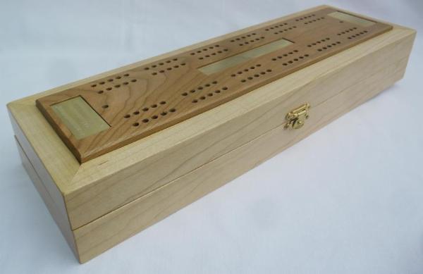Shown below is an Athena Cribbage Board made from Maple with a Cherry top playing surface.