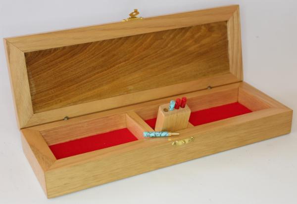 More details about the scoring pegs are available on the Cribbage Pegs page above, or click here. The scoring pegs are made from brass and acrylic and are stored in a rotating housing preventing them from falling out during storage or transit. Generally 2 pairs of scoring pegs are supplied with each board, but more can be supplied and housed if required. Please specify scoring peg colour preference at the time of ordering.